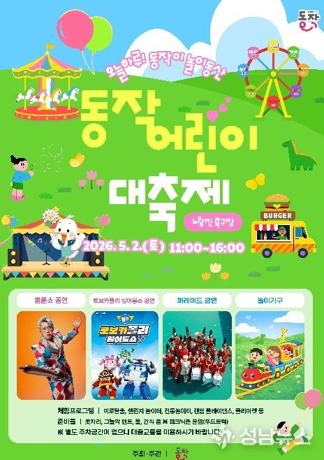 동작구가 어린이날을 맞아 어린이와 가족이 함께 즐기는 ‘2026 동작어린이대축제’를 개최한다고 밝혔다.