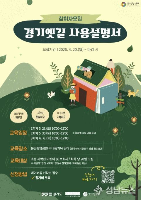 경기역사문화유산원 관계자는 “이번 프로그램은 어린이들이 경기옛길의 역사와 자연을 직접 보고, 관찰하고, 손으로 기록하면서 지역 문화유산을 친숙하게 받아들일 수 있도록 마련했다”며 “가족이 함께 참여해 배우고 나누는 뜻깊은 시간이 되길 바란다”고 말했다.