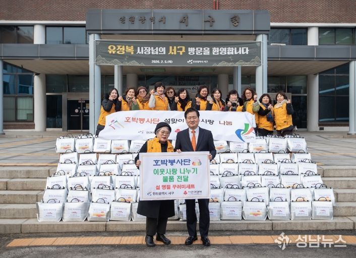 성남뉴스 관리자 기자 | 인천광역시 서구는 지난 5일 호박봉사단(단장 최정옥)으로부터 설명절 먹거리 꾸러미 150박스를 전달받았다.