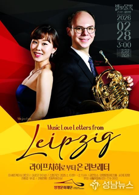 성남뉴스 관리자 기자 | 양평문화재단은 오는 28일 오후 3시, 양평문화재단 2층 시어터양평에서 ‘별빛물빛 콘서트 in 양평’ 2월 정기공연으로 클래식 공연 《라이프치히로부터 온 러브레터(Music Love Letters from Leipzig)》를 선보인다.