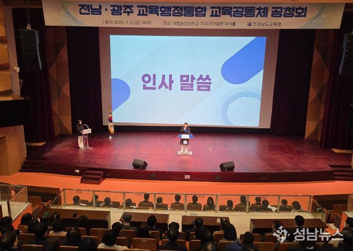 성남뉴스 관리자 기자 | 김정희 전남도의회 교육위원장은 2월 6일 순천대학교 우석홀에서 열린 '전남·광주 교육행정통합 교육공동체 공청회'에 참석해, 전남·광주 교육행정통합 논의의 핵심 가치로 ‘교육 중심의 통합’을 강조했다.