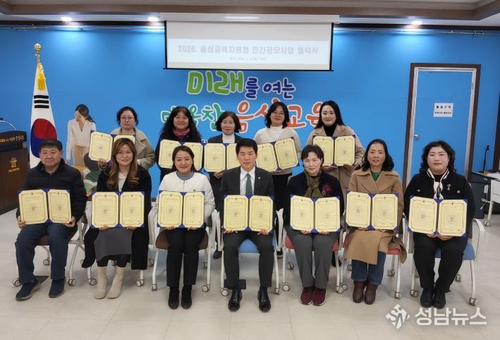 (성남뉴스) 음성교육지원청은 2026학년도 음성교육지원청 민간공모사업 대상자를 2월 9일 확정하고, 선정 기관과 협약식을 개최했다.