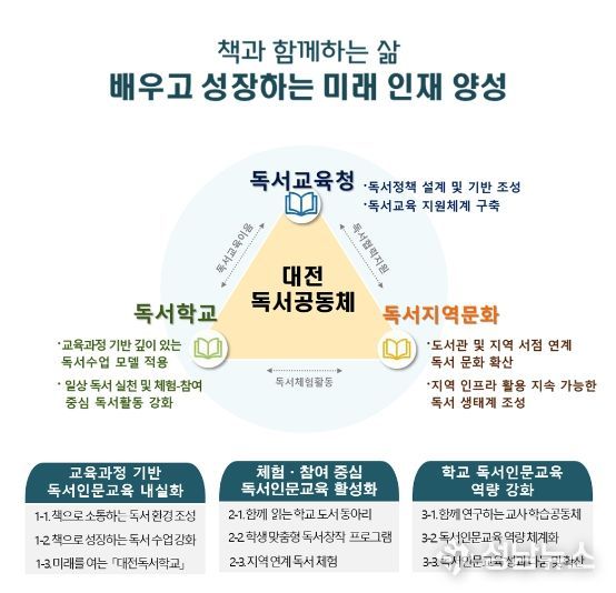 대전시교육청은 이번 계획을 통해 ‘대전독서교육청’으로서의 정체성을 확립하겠다는 포부다. ‘읽는 학교’를 넘어 ‘생각하는 교실’로, ‘개인의 독서’를 넘어 ‘사회적 독서’로 나아가기 위해 ‘대전독서학교’ 시스템을 가동하고 학교와 가정, 지역사회가 연결된 독서 생태계를 조성하는 데 교육청의 역량을 집중할 방침이다.