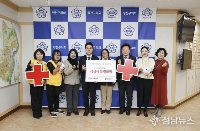 (성남뉴스) 서울시 양천구의회는 2월 10일 대한적십자사 서울지사에 2026년 적십자 특별회비를 전달하며, 지방의회로서 지역사회 사회적 안전망 강화에 동참했다.