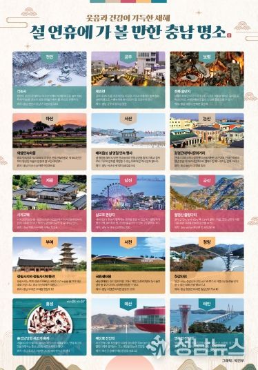 도는 충남을 찾는 방문객의 편의를 위해 설 연휴 기간 개최되는 주요 행사·프로그램 및 관광지·맛집·숙소 운영 현황을 충남관광 누리집을 통해 알리고 있다.