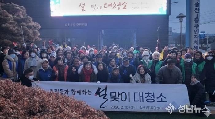 (성남뉴스) 의정부시 송산1동주민센터는 2월 10일 다가오는 설 명절을 맞아 귀성객들에게 쾌적한 마을 환경을 제공하기 위해 ‘깨끗한 마을 만들기’ 대청소를 실시했다.