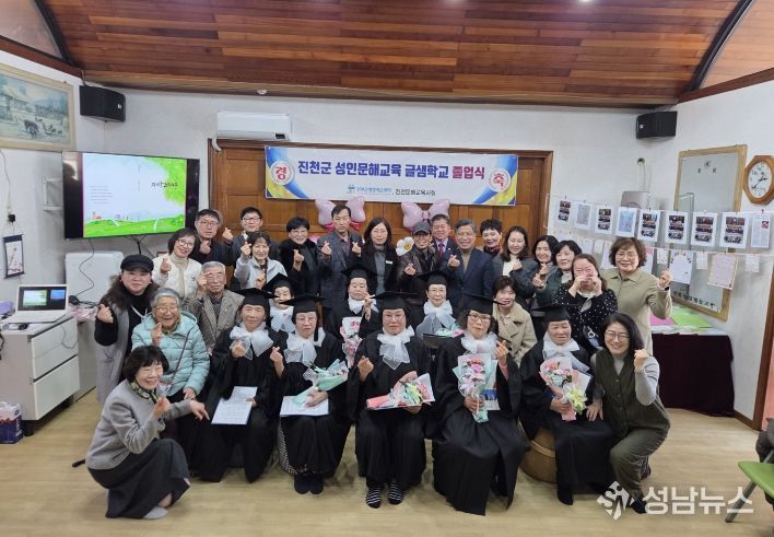 (성남뉴스) 충북 진천군은 12일 백곡면 지곡마을 경로당에서 성인문해교육 프로그램 ‘찾아가는 마을학습장’ 졸업식을 개최했다.