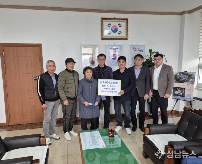 (성남뉴스) 당진시는 석문면 이장단협의회가 지난 12일 석문면 행정복지센터를 방문해 올겨울 화재 피해를 입은 2가구에 성금 400만 원을 전달했다고 밝혔다.