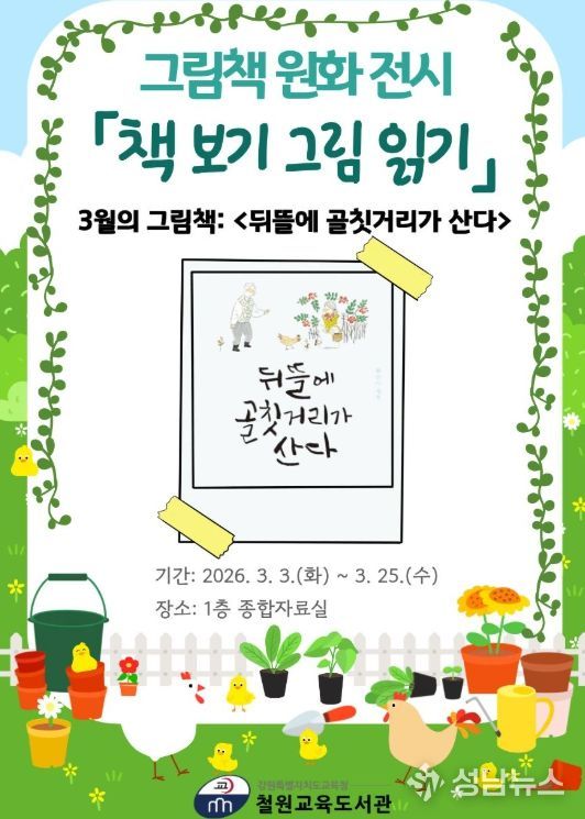 (성남뉴스) 철원교육도서관은 3월부터 12월까지 1층 복도 갤러리와 종합자료실에서 그림책 원화 전시 ‘책 보기 그림 읽기’를 운영한다.