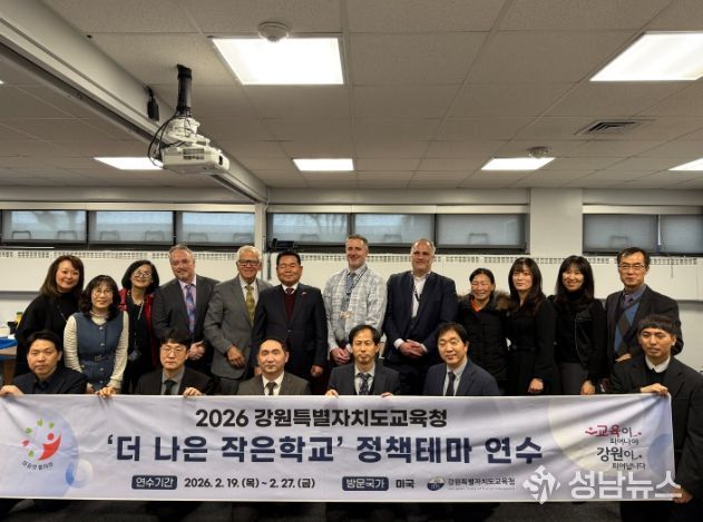 (성남뉴스) 강원특별자치도교육청 정책연수단(2월 19일부터 27일까지 운영)은 미국 뉴저지주를 방문해 포트리 교육위원회(Fort Lee B.O.E.)와 파라무스 교육위원회(Paramus B.O.E.), 비겐 아카데미(Bergen Academy) 마크넷 스쿨을 찾아 교육 분야 교류 협력 방안을 논의했다고 23일(월) 전했다.