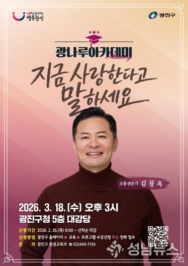 (성남뉴스) 광진구가 오는 3월 18일 구청 대강당에서 명사 초청 특강 ‘광나루아카데미’를 개최한다.