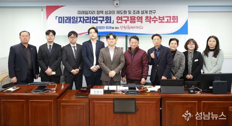 (성남뉴스) 창원특례시의회 미래일자리연구회(대표의원 진형익)는 24일 착수보고회를 열고 지난 4년 간 수행해 온 정책연구 성과를 제도화하기 위한 심화연구를 시작했다.