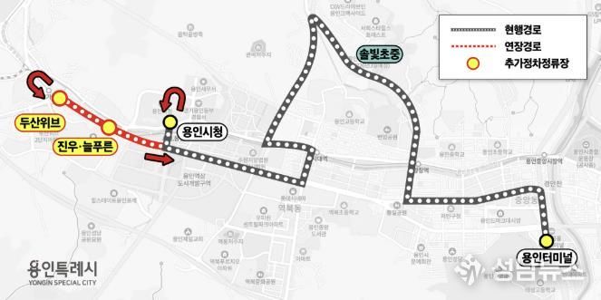 연장에 따라 현대연수원부터 마북동 행정복지센터, 연원마을, 교동마을을 거쳐 구성역까지 운행하던 502번 버스의 기점이 현대연수원에서 ‘단국대·치과병원’으로 변경된다.
