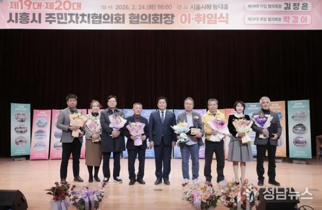 (성남뉴스) 시흥시 주민자치협의회는 지난 2월 24일 시청 늠내홀에서 제20대 시흥시 주민자치회장 이취임식을 열었다.
