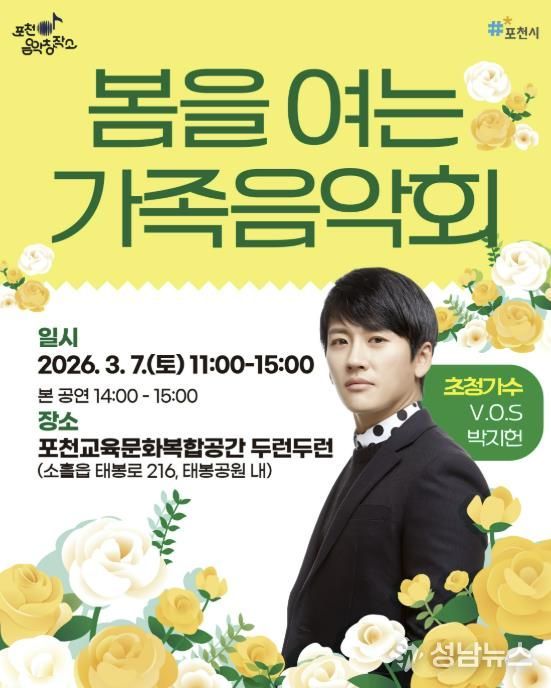 (성남뉴스) 포천시는 오는 3월 7일 포천시 교육문화복합공간 두런두런에서 ‘포천음악창작소, 봄을 여는 가족음악회’를 개최한다.