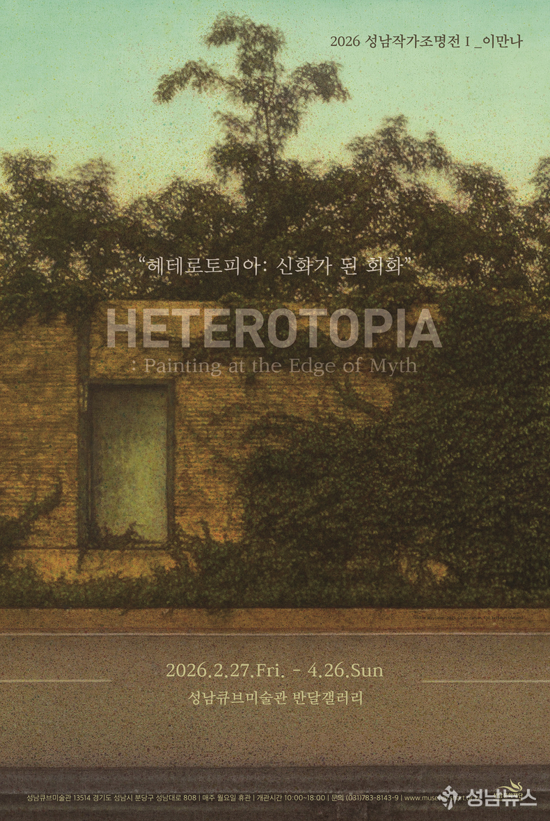 성남문화재단(대표이사 윤정국)은 지역의 역량 있는 작가들의 작품 세계를 집중 조명하는 기획전 2026 성남작가조명전의 첫 번째 전시로 ‘헤테로토피아: 신화가 된 회화’를 오는 2월 27일(금)부터 4월 26일(일)까지 성남큐브미술관 반달갤러리에서 개최한다.