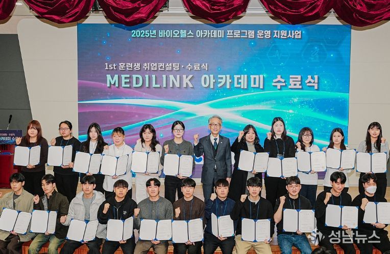 (성남뉴스) K-MEDI hub가 지난 2월 25일 커뮤니케이션센터 2층 대강당에서 ‘MEDILINK 아카데미 제1기 수료식’을 개최했다.