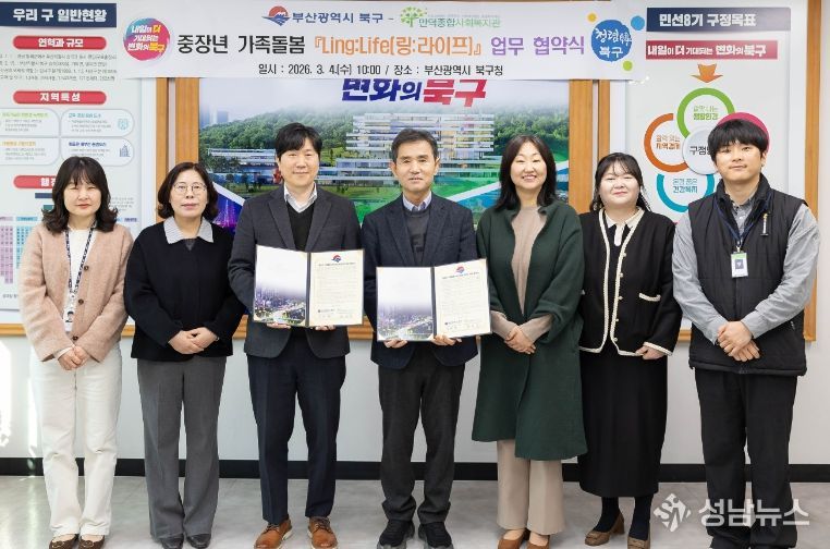 (성남뉴스) 부산 북구는 4일 만덕종합사회복지관과 가족돌봄 중장년 가구를 지원하는 ‘Ling:Life(링:라이프)’ 사업 추진을 위한 업무협약을 체결했다고 밝혔다.