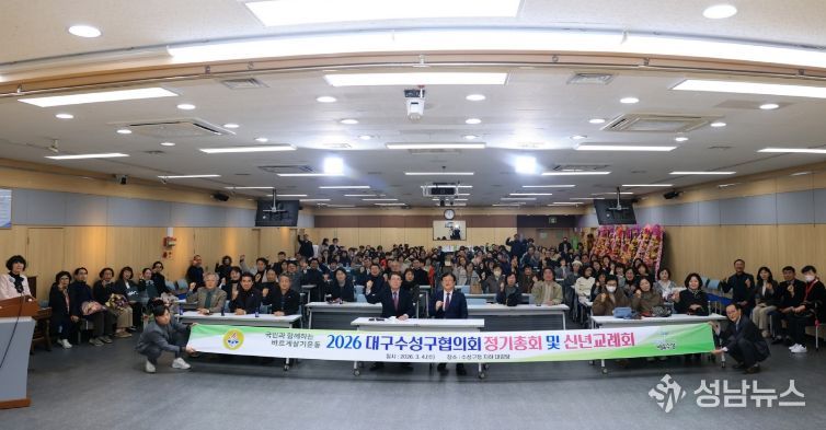 (성남뉴스) 바르게살기운동 대구수성구협의회(회장 황선우)는 지난 4일 구청 대강당에서 회원과 내빈 150여 명이 참석한 가운데 ‘2026년 신년교례회’를 개최했다.