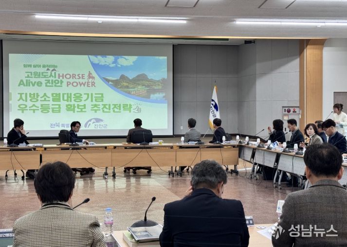 (성남뉴스) 진안군이 지방소멸대응기금의 체계적 운영과 집행률 제고를 위해 전 부서 협업체계를 강화하며 우수등급 확보에 총력을 기울이고 있다. 군은 3월 확대간부회의에서 2027년 지방소멸대응기금 투자계획 주요 전략과 우수등급 확보 추진방안을 보고하고, 인구활력 정책과 연계한 중장기 투자 방향을 공유했다.