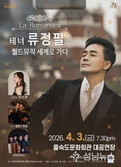 (성남뉴스) 사하구 을숙도문화회관은 오는 4월 3일 오후 7시 30분 대공연장에서 제20회 스페셜 아티스트 'La Romantica - 테너 류정필의 월드뮤직 세계로 가다' 공연을 개최한다.