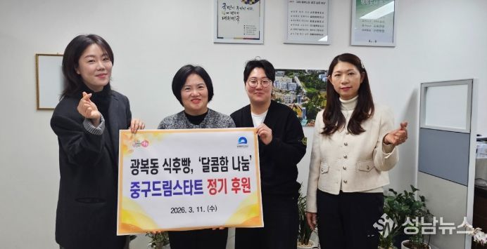 (성남뉴스) 부산 중구는 지난 11일, 광복동 디저트 맛집‘식후빵’과 함께 드림스타트 아동들을 위한‘달콤한 나눔’정기후원 전달식을 진행했다.