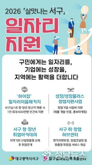 (성남뉴스) 대구 서구는 지역 청·장년에게 안정적인 일자리를 제공하고 기업 성장을 지원하기 위해 ‘2026년 살맛나는 서구 일자리 지원사업’을 본격 추진한다고 밝혔다.