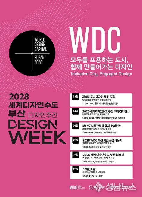 (성남뉴스) 부산시는 오는 3월 23일부터 29일까지 일주일간 '2028 세계디자인수도(WDC) 부산 디자인 주간(Week)'을 운영한다고 밝혔다.
