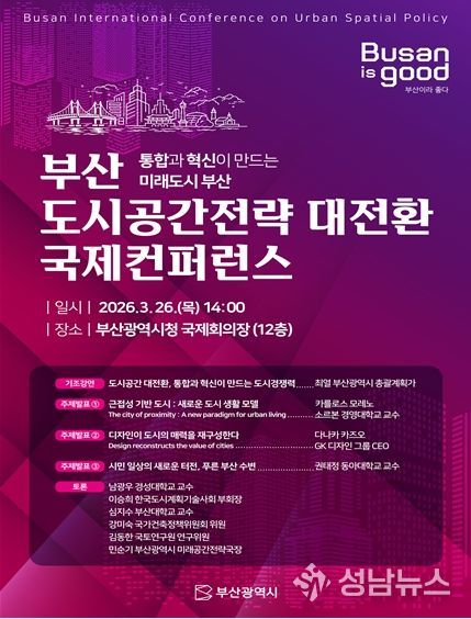 부산시는 26일 오후 2시 시청 국제회의장에서 '부산 도시공간전략 대전환 국제컨퍼런스'를 개최한다고 밝혔다.
