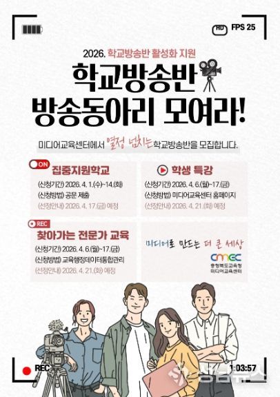 충청북도교육청 직속기관 교육연구정보원(원장 이찬동) 미디어교육센터는 학교 방송활동 활성화와 학생 미디어 제작 역량 강화를 위해 '2026 학교방송반 활성화 지원' 프로그램을 운영한다.