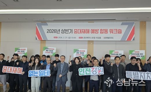 강원특별자치도는 3월 27일 오후 1시 춘천 베어스호텔에서 도·시군, 고용노동부 등 관계자 50여 명이 참석한 가운데 ‘2026년 상반기 중대재해 예방 합동 워크숍’을 개최했다. 이번 워크숍은 중대재해처벌법 엄정 대응 기조에 맞춰 실질적인 사고 예방과 현장 실무자의 대응 역량 강화를 위해 마련됐다.
