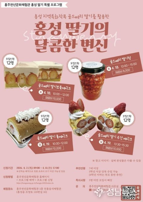 홍성군 홍주천년문화체험관은 오는 4월 18일부터 19일까지 이틀간, 지역특화작목인 골드베리 딸기를 활용한 특별 프로그램을 운영한다고 밝혔다.