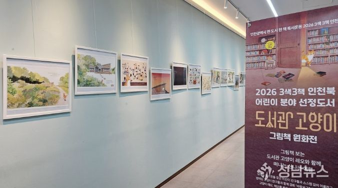 인천광역시교육청신트리도서관은 인천도서관이 추진하는 '2026 3색3책 인천북 ‘도서관 고양이’ 원화 순회전시' 공모 사업에 선정되어, 오는 4월 1일부터 26일까지 원화 전시를 운영한다.