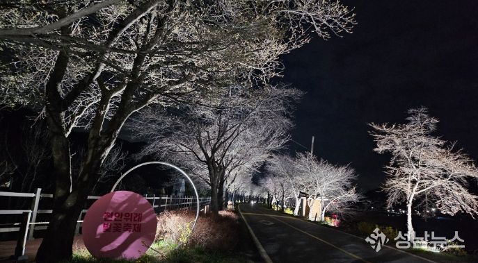 천안시 북면은 오는 11~ 12일 열리는 ‘제11회 천안위례벚꽃축제’를 앞두고 행사장 주변에 야간 경관조명을 설치했다고 2일 밝혔다.