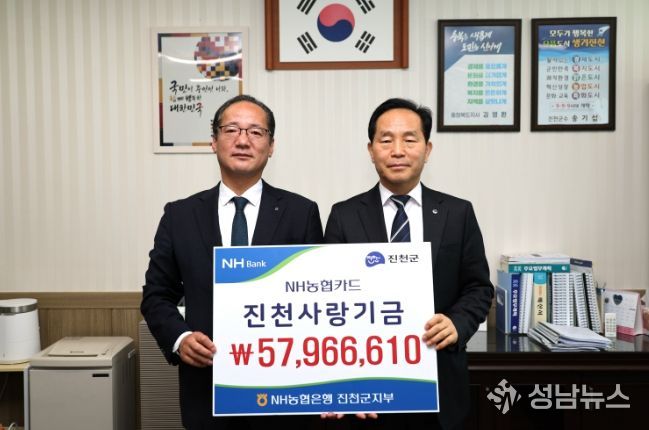 NH농협은행 진천군지부는 2일 진천군청을 방문해 2025년도 제휴카드 사용에 따른 적립 기금 5천796만 원을 진천군에 전달했다.