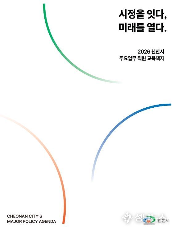 천안시는 2026년 시정 핵심 방향과 주요 사업을 담은 실무 교육용 안내서 ‘시정을 잇다, 미래를 열다 : 2026 주요업무 직원 교육 책자’를 발간했다고 3일 밝혔다.