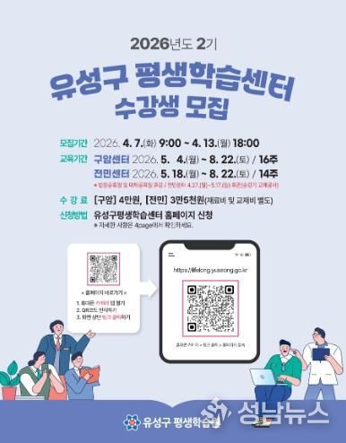 대전 유성구는 오는 7일부터 13일까지 구암평생학습센터와 전민평생학습센터에서 ‘2026년 2기 평생학습센터’ 수강생을 모집한다.