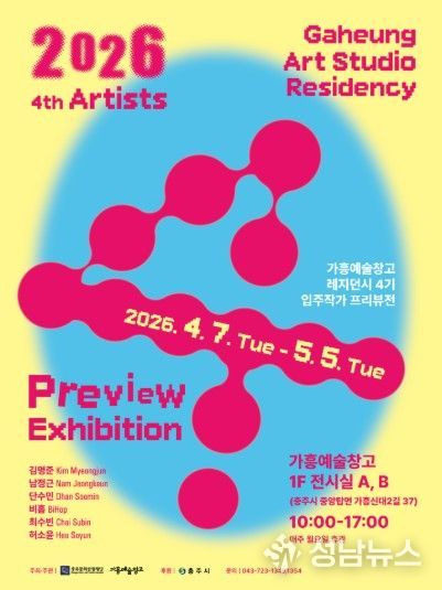 충주문화관광재단은 4월 7일부터 5월 5일까지 가흥예술창고에서『2026 가흥예술창고 레지던시 4기 입주작가 프리뷰전』을 개최한다고 밝혔다.