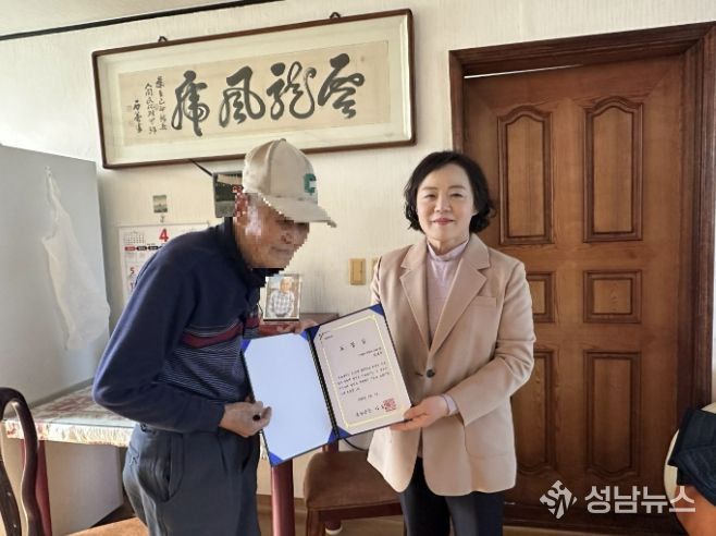 표창을 받은 유공자는 “직접 집까지 찾아와 표창장을 전달해 주어 매우 감사하다”며 소감을 전했다.