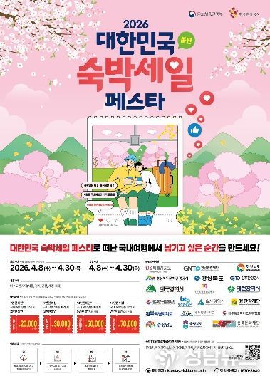 예약은 롯데온, 마이리얼트립, 여기어때 등 7개 참여 온라인 여행사를 통해 가능하며, 자세한 사항은 ‘대한민국 숙박 세일 페스타’ 공식 누리집또는 전담 콜센터를 통해 확인할 수 있다.