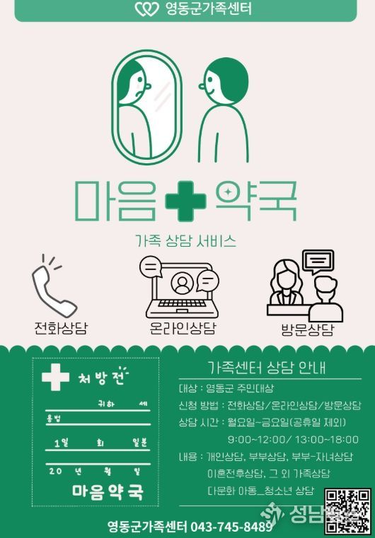영동군가족센터 관계자는 “가족 간 갈등이나 개인의 심리적 어려움을 겪고 있는 주민들에게 실질적인 도움을 주기 위해 다양한 상담 서비스를 운영하고 있다”며 “편안한 마음으로 상담을 신청해 건강한 가족관계를 만들어가길 바란다”고 말했다.