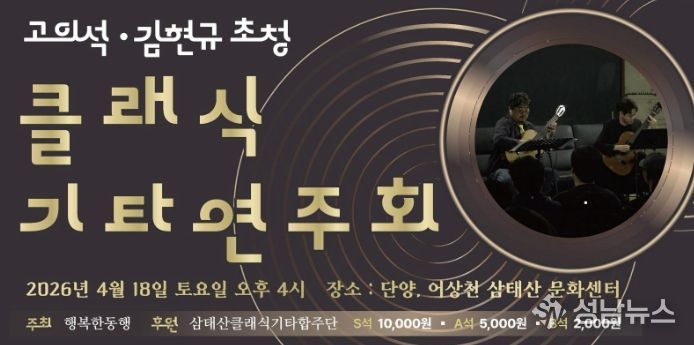단양군 어상천 지역에서 활동하는 삼태산 클래식기타 합주단은 공연기획단체 행복한 동행(대표 홍원의)과 함께 오는 18일 오후 4시 어상천 삼태산문화센터에서 ‘고의석·김현규 초청 클래식기타 연주회’를 개최한다.