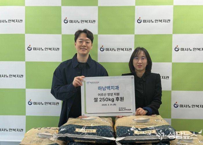 김교심 관장은 “개관 초기부터 꾸준히 따뜻한 나눔을 실천해 주시는 하남맥치과에 깊이 감사드린다”라며 “전달받은 쌀은 꼭 필요한 어르신들께 소중히 전달하겠다”라고 밝혔다.