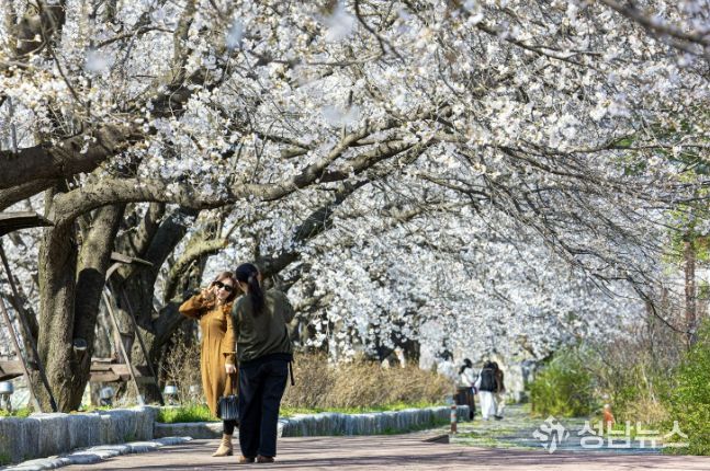 괴산군 곳곳에서는 벚꽃이 절정을 이루며 산책과 나들이를 즐기려는 주민과 관광객들로 활기를 띠고 있다.