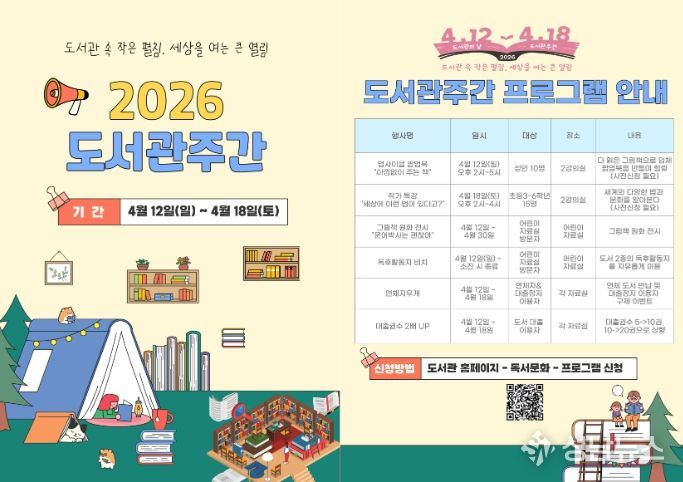 군 관계자는 “도서관주간을 통해 군민들이 책과 더욱 가까워지고 다양한 독서문화 프로그램을 즐길 수 있길 바란다”며 “앞으로도 누구나 쉽게 참여할 수 있는 문화 프로그램을 지속적으로 확대해 나가겠다”고 말했다.
