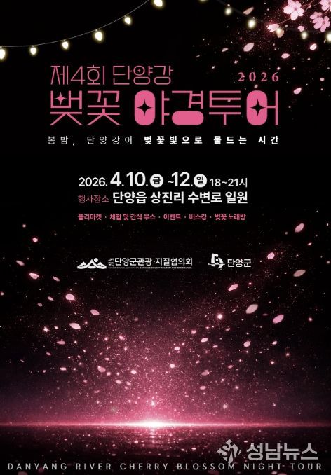 군 관계자는 “단양강변의 벚꽃과 야간 조명이 어우러진 이번 행사는 단양의 봄밤을 더욱 특별하게 기억하게 할 관광 콘텐츠가 될 것”이라며 “앞으로도 계절의 매력을 살린 차별화된 관광 프로그램을 지속적으로 발굴해 단양만의 체류형 관광 경쟁력을 높여가겠다”고 말했다.