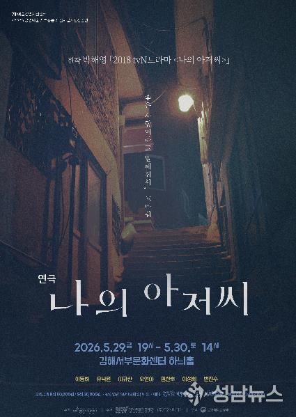 (재)김해문화관광재단 김해서부문화센터는 ‘2026 공연예술 지역유통 지원사업’ 선정작인 연극 '나의 아저씨'를 오는 5월 29일과 30일 양일간 하늬홀에서 선보인다.