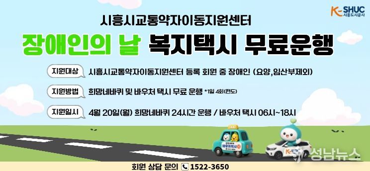 시흥도시공사는 오는 4월 20일 ‘제46회 장애인의 날’을 맞아 교통약자의 이동 편의 증진과 사회참여 확대를 위해 무료 운행 서비스를 제공한다고 밝혔다.