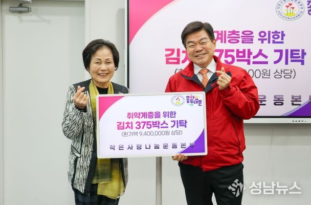 서울 동대문구는 9일 작은사랑나눔운동본부(대표 이남숙)로부터 저소득 가정을 위한 김치 2㎏ 375박스(940만 원 상당)를 전달받았다고 밝혔다.
