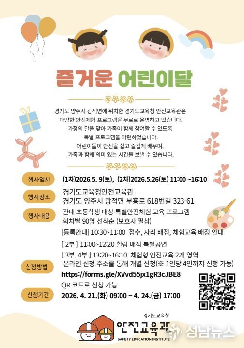 경기도교육청안전교육관이 가정의 달을 맞아 가족이 함께 참여해 안전의 중요성을 쉽고 즐겁게 배울 수 있도록 ‘가정의 달 안전교육 특별 프로그램’을 운영한다.